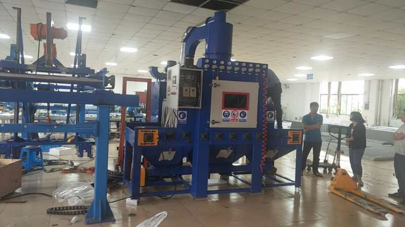 磨具輸送式噴砂機調試現場